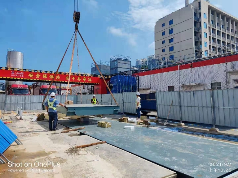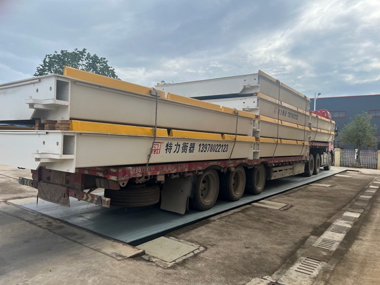 柳州特力汽車衡采用模塊化軸銷搭接,以便秤臺之間可以搭接互換,便于秤體現(xiàn)場安裝。限位采用縱向與橫向結(jié)合的方式,保證秤體縱向、橫向不移位。